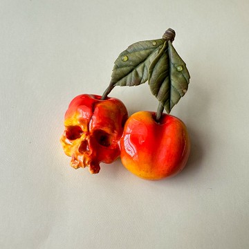 亮眼櫻桃骷髏胸針,手工別針,莓果飾品,胸針別飾
