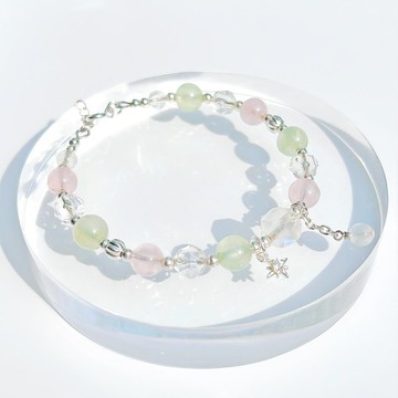 【材質說明】✦鑽切月光石 約 8.5 mm✦葡萄石 約 7 mm✦粉晶 約 6.5 mm✦鑽切白水晶 約 6.5 mm✦月光石 約 4.5 mm✦S925純銀&鋯石鍊飾✦記憶鋼圈* 手鍊整體設計會因尺碼不同而有所改變/珠子增多/減少。【 手圍尺寸 | Size 】請用軟尺在手腕最細處,不鬆不緊地貼著手腕繞一圈,量度得出您手腕的圍度,無需自己預留空間。__________________________【天然水晶靈性功效】月光石|Moonstone月光石又稱「戀人之石」,是六月的誕生石,象徵愛情和情感的和諧。它能平撫心靈,增進情侶間的溝通與理解,化解誤會。對於直率或衝動的性格,月光石有助於展現內在的柔情,吸引合適的伴侶。此外,它還能改善失眠,其穩定的能量有助於放鬆大腦,促進安穩睡眠,使人更加包容與理解。這是一顆充滿浪漫與溫柔的寶石。葡萄石 |Prehnite葡萄石又名希望之石,是一種充滿生機與活力的水晶。它主要對應心輪,能夠緩解壓力、淨化心靈,並提升靈性意識。這種水晶能夠吸收負面能量,轉化為正面的能量,幫助釋放累積的壓力和情緒,使人感到輕鬆自在。葡萄石還能增強自信心和工作能力,使心情開朗,並有助於心臟、肺等部位的活力,緩解不適感,促進身心健康。它的溫柔能量,為佩戴者帶來平和與希望。粉晶|Rose Quartz粉晶對應人體心輪,它的能量能撫平感情創傷、減輕焦慮,平衡情緒保特心境平靜,讓人找回愛的信心,重新找回自己,把封閉的內心打開,寬容他人接納不同價值觀的人和事。粉晶同時亦是廣為人知的桃花石,能幫助你激發心中愛的能量,從而增強與他人的情感連結,改善人際關係增加個人魅力,招來桃花、人緣運。白水晶|Rock Crystal白水晶對應人體的第八脈輪也被譽為「水晶之王」,具有強大的淨化作用。它能夠清除負面能量,穩定情緒,提高專注力和智慧,有助於平衡身體的能量系統。此外,它還能增進記憶力,非常適合需要持續專注的學生或專業人士。在靈性上,白水晶可以協助連結更高意識層次,促進整體的身心靈和諧。【包裝】*禮物盒*消磁石*後備線(只限彈力線手鍊款)*抹銀布(只限925純銀手鍊款)https://live.staticflickr.com/65535/51179418897_f2966e0884_b.jpg【淨化方法】共振消磁法將水晶飾品放在我們附送的消磁石或者晶族/晶洞上,讓消磁石或者晶簇/晶洞發出的振動能量清除水晶負面記憶及重新充電,建議放置4小時以上就可以完成淨化消磁使其能量完全補充。https://hk.pinkoi.com/product/tX2YykW9 <(選購天然水晶消磁碎石)【日常保養】1.避免接觸水空氣中的水氣以及皮膚表層汗水容易對飾品造成侵蝕作用,應盡量避免接觸水,建議洗澡、泡溫泉、游泳等時候取下飾品。2.避免接觸化學添加物品應避免接觸酒精、香水、護膚霜及化妝品等含有化學添加物的產品,此類產品會加速飾品氧化速度及損耗金屬表面。3.切勿用力拉扯佩戴飾品或取下飾品時,切勿大力拉扯以及反覆屈折飾品,以免產生磨損、斷裂、變形等情況發生。4.應保持清潔若長時間不佩戴或佩戴飾品過後,建議使用乾燥的軟布擦拭表面以免汗水停留飾品上造成侵蝕。【購買須知】1.本店貨品均為手工製產品,製作需時請耐心等待,手作不容易請愛惜佩戴及細心保存,少數商品有機會存在因手作原因無法避免的微細瑕疵,還望見諒。2.天然水晶為自然產物晶體及成色不可能完全一樣,偶然出現冰裂、棉絮、凹洞、微細大小不一、微細的雜質等屬正常現象,製作前會優先篩選品相好的製作,如未能接受切勿下單,客人均不能逐粒挑選。3.所有貨品圖片均為店主自行拍攝的實物圖,店主在拍攝上會以自然陽光盡量呈現實物樣子,但由於拍攝設備、光線、螢幕設備等因素 有機會導致相片與實物存在輕微偏差,一切以實物為準。4.由於每位客人手圍都有所不同,店主會因應你們的手圍作出微細調整,下單前先自行確認手圍以及通知店主或備註。如未有通知或備註手圍則被視為預設手圍,本店均不承擔其責任。(預設手圍可見於產品描述欄)5.若於佩戴過程中有破損,可聯絡店主,客人可以將產品寄給店主進行維修處理,1年內保修期內免費維修保養,如若需要更換新的零件將酌量收取費用。(來回運費需由客人自行負擔)6.如有任何爭議,Paradise_ Studio.Hk將保留最終決定權 【物流須知】「香港、澳門、台灣」使用順豐寄出,寄出後可於訂單狀態查閱運單號碼香港地區: 寄出後預計運送時間2-3天。(香港客人可以提供住鄰近順豐服務站、順豐智能櫃或者住宅地址)澳門地區: 寄出後預計運送時間3-5天(如遇上海關清關檢查則需更長時間)台灣地區: 寄出後預計運送時間5-7天(如遇上海關清關檢查則需更長時間)注意事項: 請確保填寫正確資料,如若因為填錯誤資料等人為因素而導致無法送達,我們將不會退款或者免費補發。