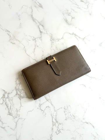稀有古董包 Hermes棕灰金色 Bearn長夾 錢包 皮夾 中古包 二手包