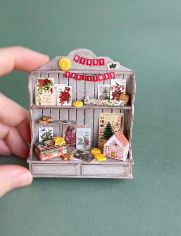 套裝包括一個裝滿禮物、明信片、書籍和聖誕裝飾品的架子。每件物品都是手工製作的,這套組合將是玩具屋的絕佳禮物和裝飾,營造出合適的心情