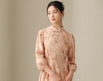 金縷蟬翼 新中式復古中國風 收腰氣質真絲桑蠶絲洋裝