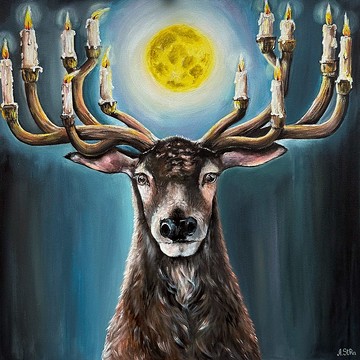100% 原創獨家畫布繪畫,在森林中製作。其中的一種。這幅獨特的畫作描繪了一隻異想天開的馴鹿,它的角落掛著枝形吊燈。該藝術品是在拉伸棉帆布上用專業壓克力塗料製成的。情節是獨一無二的:美麗而優雅的雄鹿,角頂上的蠟燭和上方的月亮非常富有表現力。畫面細緻,如森林般,充滿野生動物的氣息。它將成為任何空間中引人注目且有吸引力的口音。送給大自然和動物愛好者的絕佳禮物。新系列作品名稱:《夜間馴鹿》年份:2023尺寸:50 x 50 x 1.5 公分(20x20x0.6 吋)材質:壓克力顏料、拉伸棉帆布、壓克力色清漆。這幅畫沒有裝框,但邊緣也有顏色。請注意,顏色可能會根據您的顯示器設定而有所不同