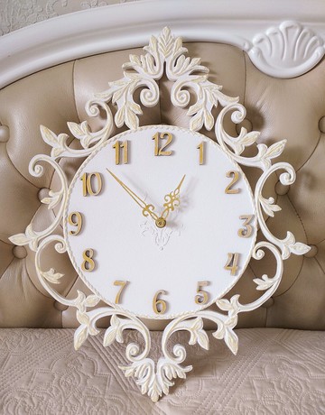掛鐘 復古風格金飾白色小掛鐘 靜音掛鐘