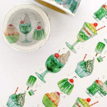 用透明水彩描繪了哈密瓜蘇打甜點們。像是漂浮冰淇淋、聖代、果凍等可以享受各種哈密瓜蘇打的遮蔽膠帶。請用於禮物包裝、日記、信件或筆記本♪寬度比一般遮蔽膠帶更寬,為20mm。日式和紙 (丸天製)20mm × 10m____________________________________【哈密瓜蘇打甜點插畫系列】備有同款插畫的其他雜貨。哈密瓜蘇打甜點 散裝貼紙https://jp.pinkoi.com/product/uHzpvhjK哈密瓜蘇打甜點 迷你信紙組https://jp.pinkoi.com/product/QCzyzU3z哈密瓜蘇打 迷你信紙組https://jp.pinkoi.com/product/DRwFcvYA哈密瓜蘇打聖代 留言卡https://jp.pinkoi.com/product/mdqer7et哈密瓜蘇打 B6 線圈筆記本https://jp.pinkoi.com/product/FmfiqMCZ