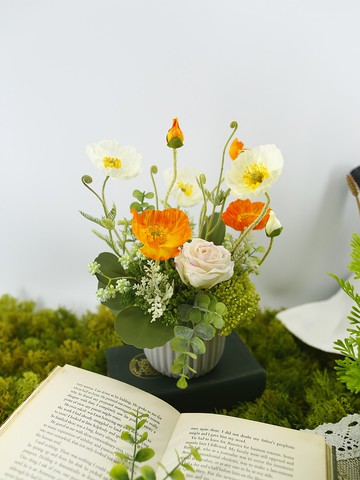 HUGO DECO 擬真花飾作品名稱:橘白虞美人小品 擬真香氛花飾主要材質:乳膠複合媒材作品尺寸:寬15~25cmx深18~28cmx高23~33cm盆器尺寸:9x8.5cm盆器花色/材質:馬卡龍色系直線條盆作品特色:選用進口高階擬真花材,較不易沾染灰塵,以特級擬真花材手工製作而成的植栽花飾,附加擴香試管,環境美化同時帶有芬芳的香氣。(純手工製品,尺寸會有些許差異)清潔方式:小刷子定期刷掉灰塵即可,請勿沖水,可用濕布稍微擦拭。**每個作品皆為設計師純手工製作,照片有些微差異皆為正常,都很漂亮喔~**選購香氛花飾系列,皆送精油30ml體驗組一份榆果傢飾新光三越百貨專櫃聯名款