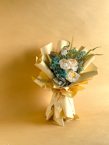 清爽淡雅的花束,細緻給人無可言喻的感動。精美的擴香花束,每一朵花都可以噴香水或點精油擴香,花束高度約30公分,寬度約25公分。作為生日花束、畢業花束都好適合🧡緩緩花藝所有商品皆為天然植物素材手工製作顏色、大小、姿態差異或自然缺葉皆為正常現象文字皆為手寫,非印刷品每個作品、每支花草都是獨一無二的運送過程皆盡力保護商品若有細微素材掉落為正常現象《保存方式》乾燥花、永生花適合濕度為40-50度放置冷氣房尤佳避免對風直吹與太陽直曬或過於潮濕的環境可觀賞1-3年視保存條件而定永生花、乾燥花都是真的植物經過加工延長保存時間自然素材在環境中會漸漸失去色彩、脆化回歸自然是正常現象《保養清潔》若有灰塵可用細毛刷輕輕刷落灰塵或用弱速冷風吹拂若有黴菌可用酒精噴灑發霉處晾乾若同一處再度發霉建議丟棄
