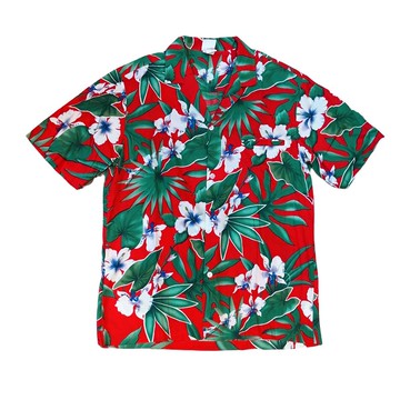 美國古著紅底花朵圖騰棉質夏威夷襯衫
