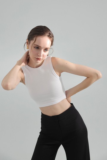 Classic Ribbed Crop Top - White | 包覆羅紋削肩背心 - 白