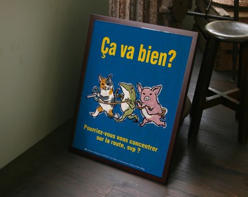 A3 尺寸迷你海報。一隻貓、一隻青蛙和一頭豬正在一起玩耍。它用法語寫著“你還好嗎?請安全駕駛”。把它放在一個框架中會更好。*數量(框架)不包含在產品中。請自帶。尺寸:29.7×42cm生產區域/生產方法原產地日本按需印刷