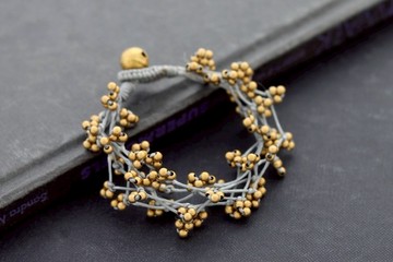 這是手工編織的手鍊,用灰色棉花打蠟的繩子與黃銅珠一起編織。關閉使用黃銅鐘♥手鐲長7寸♥輕巧而舒適運輸 :泰國航空郵件在付款後1-3天內發貨。通常需要7-21個工作日才能到達目的地。