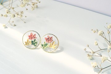 [關於 午夜的森林]店主喜歡花和森林,很晚睡。通常會在深夜望著月亮發呆時產生創作靈感。希望藉著製作花朵主題的飾物,治癒同是惜花之人的心靈。期待大家戴著心愛的飾品,到郊外漫步,親近大自然。[簡介]<山上的漸變色楓葉耳釘> 某年初秋到青森旅遊,第一次賞楓葉,在紅葉山上柔和晨光的照射下,翠綠葉子漸漸轉成金黃色再變成火紅色,那個景象實在太美太深刻,想要好好記錄下來。[作品尺寸]約22mm x 22mm[作品材質]樹脂滴膠、樹脂黏土[注意事項]手作物品每件會有輕微差異,請見諒可免費轉為:(請在備註欄註明,如留白則如圖中所見所得)1)三角式金屬耳夾2)螺旋式金屬耳夾3)樹脂耳針 (適合對金屬敏感者)4)樹脂耳夾 (適合對金屬敏感者)手作物品較為脆弱, 請溫柔對待, 請勿大力拉扯金屬部分隨時間流逝會自然氧化變暗,屬正常現象可使用拭銀布或洗銀水減輕氧化情況