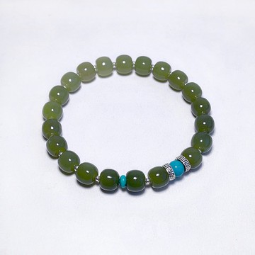 https://live.staticflickr.com/65535/54267860750_21099c9e44_b.jpg和田玉(Nephrite)和田玉俗稱真玉,軟玉的一個品種,傳統概念特指新疆和田地區出產的玉石,和田玉是高端具有領創品牌的軟玉,新國標泛指硬度在6.0至6.5之間玉石的名稱。古醫書稱「玉乃石之美者,味甘性平無毒」,並稱玉是人體蓄養元氣最充沛的物質。玉石不僅作為首飾、擺飾、裝飾之用,還用於養生健體。自古各朝各代帝王嬪妃養生不離玉,而宋徽宗嗜玉成癖,楊貴妃含玉鎮暑,玉為枕而腦聰,古代皇帝就喜歡用玉做枕頭,向中國古代長壽的皇帝都久用玉枕。玉石不但能美化人們的生活,陶冶性情,而且祛病保平安。對人體具有養顏、鎮靜、安神之療效,長期使用,會使你精神煥發,延年益壽。和田玉的材質能夠發氣、可以吞吐,若對準穴位時,能刺激經絡,疏通臟腑,它能隨性而發,與人體的體溫迅速結合,位於人手腕背側有「養老穴」,且可蓄元氣,養精神。古代醫藥名著中記載《神農本草》、《本草綱目》:玉石有 除中熱,解煩懣,潤心肺,助聲喉,滋毛髮,養五臟,安魂魄,疏血脈,明耳目」等療效。現代科學分析,許多玉石所以對人體有益,是因為玉石中含有金、銀、矽、鋅、鐵、硒、鎂、錳.....等十多種有益人類健康的微量元素之緣故。玉石是蓄天地精華最充沛的物質,經常佩戴,能夠使玉石中含有的微量元素通過皮膚傳入人體內,從而平衡陰陽氣血的失調,使人祛病保健益壽。玉石中的(錳元素)可以對抗自由基對人體造成的損傷,參與蛋白質、維生素的合成,促進血液循環,加速新陳代謝、抗衰老,防止老年痴呆症、骨質疏鬆、血管粥樣硬化等。玉石中的(硒元素)它能催化有毒的氧化物還原為無害的羥基化合物,從而保護生物膜免受其害,起到抗衰老作用;它還能解除有害重金屬如鎘、鉛等對人體內的毒害,能增強人體免疫功能,提高機體抗病能力。如果說鑽石是西洋寶石,那麼,玉就是東方寶石。玉除了具有裝飾、觀賞和保值的功效外,還具有保健美容的作用,所以,玉被西方女士們稱為「東方魔玉」。https://live.staticflickr.com/65535/54267860745_3410569a1f_b.jpghttps://live.staticflickr.com/65535/54266553147_039b111e84_b.jpg[ 商品特色 ]高等級 天然 和田玉青海料 .油光水潤 . 礦料乾淨 . 無雜色 .結合 綠松石配件 . 925純銀配件 .溫潤玉美 . 素淨高雅 . 漸透心肺 .和田玉市場價飆漲 . 好的礦料開價比往年高很多 .材質:天然玉石 和田玉青海料 . 綠松石 . 925純銀配件 . 日本彈力絲線 .尺寸:和田玉青海料 : 7.9 mm綠松石佩珠 : 6.4 mm照片上手珠的手圍 : 15.6 公分 .[ 小提醒 ]一物一圖 . 原件寄出 .可調整手圍 .請告知設計師手圍尺寸 . 淨手是幾公分.由設計師放縮適合的尺寸.https://live.staticflickr.com/65535/54267675128_3dd7544261_b.jpghttps://live.staticflickr.com/65535/54266553117_737dc98a45_b.jpghttps://live.staticflickr.com/65535/54267440376_f33f623062_b.jpg[ 注意事項 ]1 . 天然礦石請避免暴曬、高溫,硬物碰撞。去海灘遊玩、曬日光浴、泡溫泉等情況下不宜應佩戴首飾,並保持水分,偶而可放置在水中,保持濕潤,平時的佩戴把玩接觸摩擦,人體皮脂可對其內部結構,起到一定的保護作用,使天然礦石更加光澤漂亮。2 . 銀飾品的保養 . 平時不配戴時,可放入夾鍊袋中收藏 .可用牙膏 和 清水清洗 . 清洗完請把水份擦乾 。3 . 照片已盡量還原實品色彩 . 色澤可能因每一個顯示器螢幕不同 . 會有些色差 . 以上請考慮其中 。4 . 館內商品照片和介紹 . 已盡量敘述了商品的狀況 . 若有想了解的 . 可聯繫詢問 。