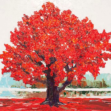 橡樹繪畫秋季樹原創藝術油畫風景畫布藝術