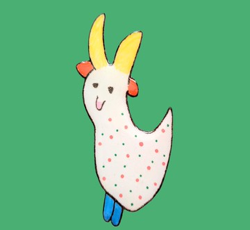 獨特的赤鹿飾針赤鹿是豐饒與長壽的象徵此款赤鹿為手繪由熱塑性塑膠板製成並以樹脂上光。