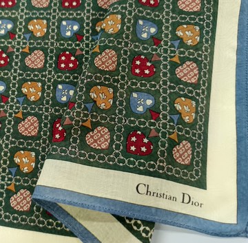 Christian Dior 復古愛心手帕 – 人字紋織布 19 x 19 英吋