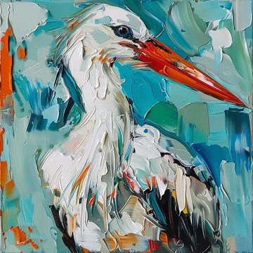 鸛畫鳥藝術原創動物油畫牆藝術裝飾