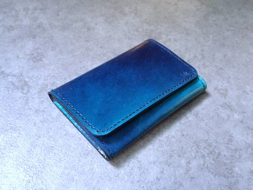 手染皮革 藍綠色極光 迷你短錢包 短夾