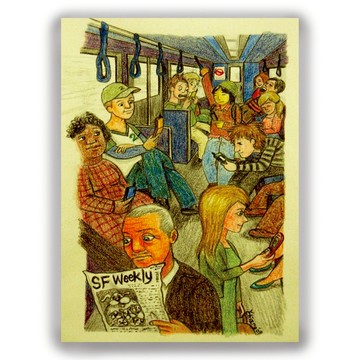 手繪插畫萬用卡/卡片/明信片/插畫卡--手機時代 低頭族 通勤族