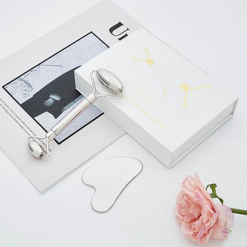 不鏽鋼緊緻提拉滾輪心型刮痧板套組(附專屬禮盒)