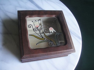 【老時光 OLD-TIME】早期二手台灣木製彩繪玻璃珠寶盒