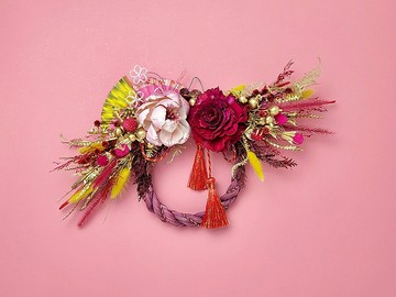 日式注連繩-和風藝妓款桃粉配色 乾燥永生花圈入厝禮