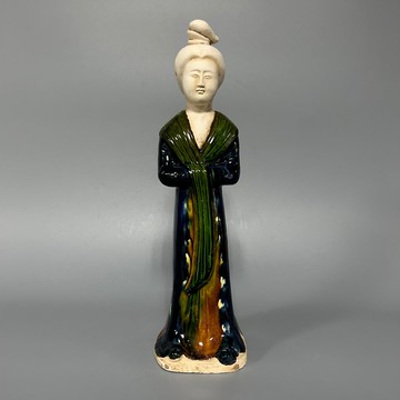 通高(cm):33.5唐三彩是一種流行於唐代的陶瓷藝術,以其繽紛多彩的色彩和多樣化的造型而聞名於世。製作唐三彩的主要時間段為唐代初期至中期(618年至907年),這一時期的陶瓷工藝達到了高峰。唐三彩以其獨特的技術特點脫穎而出,通常製作過程包括製胎、雕花、施釉以及窯燒等精湛工藝。色彩方面,唐三彩以鮮豔的黃、綠、白、褐等為主,展現了當時工匠對於色彩的巧妙運用。造型方面,陶瓷製品的形狀多樣,包括人物、動物、植物等,尤其以陶俑最為著名,如陶俑駝、馬、俑俑等。唐三彩的製作技術不僅在中國廣受讚譽,也在國際上贏得了高度評價。這一瓷器藝術風格在唐代達到巔峰,為中國後來的陶瓷工藝奠定了堅實的基礎,對後世的藝術發展產生了深遠的影響。購買須知:本館商品皆為十年以上的收藏品,時間久遠可能會有老化痕跡,如氧化、掉漆、刮痕、修補等屬於正常現象。若您極度追求完美,建議慎重考慮。我們會盡力提供詳盡的品項描述和現況照片,請買家自行判斷物件價值。古董商品無保固期也無鑑賞期,售出後恕不接受退換貨。包裝上的錦盒/紙箱因收藏歷久非全新,可能積灰、脫線、老化,如無法接受請勿下單購買,感謝您的理解。#陶器商品易碎裂,部分有缺角修補痕跡,會盡可能拍攝原況供您參考。#本館商品皆只有一件,如對現況照片有所疑慮,請勿下單,沒有相同商品可提供換貨服務。#尺寸均為手工測量,若有些許誤差敬請見諒。