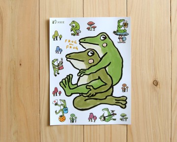 這是一款青蛙背著青蛙的貼紙。這款貼紙具備優異的防水性和耐候性,可在戶外使用,因此非常耐用。主要青蛙圖案約為 11×13.5 公分,貼紙整體尺寸約為 13×17.2 公分。在周圍的空白處,我們還散佈了許多可作為小贈品、獨立使用的迷你插畫貼紙,請您自行剪下使用。無論是貼在行李箱、筆記型電腦、iPad,或是汽車等您喜愛的地方,都能增添獨特風格。材質:乙烯基氯化物 (表面處理:亮面塑膜)尺寸:約 13×17.2 公分產地/製作方式產地:日本 (委託生產)