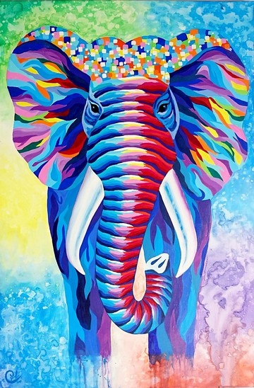 大象繪畫《帶著彩虹微笑3》elephant painting "Wear A Rainbow Smile 3" 畫中長長鼻子的大象帶著溫暖的力量,她的身體充滿彩虹般的色彩,像在親吻著大地,帶給所有人滿滿的正面力量,有如光芒及愛般為世界帶來祝福,並且照亮每一個心靈。牠的四肢如水流般融入彩色的背景之中,象徵著兩個意涵,一是代表大象融入大自然之中,與萬物分享美好的一切;二為大象正逐漸在地球上消失,喚醒所有人保護並尊重每一個野生動物。一起保持像大象般的堅強及平靜,相信在每一段不完美的逆境後總會出現彩虹。色彩豐富的大象有著彩虹般的微笑,並帶來滿滿來自大自然的愛。這幅畫將成為您家中或任何您喜愛的空間中最美好的能量,隨時與您分享彩虹般的幸福感動。尺寸:60 x 90公分媒材:畫布、壓克力顏料✦這幅畫將以無框方式寄出,會將畫布捲放在耐重的捲筒中,可避免畫作在 寄送時損毀,屆時您可以到裱框店請師傅釘回畫棒上。✦若您需要藝術家為您釘回畫棒,請訊息聯繫,屆時將在酌收費用。✦依照您空間的配置,如需要也您也可以再搭配外框。✦ 藝術品可以運往世界各地,若有未列出的的目的地,請與我聯繫。**所有電腦和手機的顯示顏色都不相同,畫作可能與您在屏螢幕上看到的圖像顏色略有不同。**