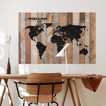 【輕鬆壁貼】世界地圖/莫蘭迪木紋 - 無痕/居家裝飾
