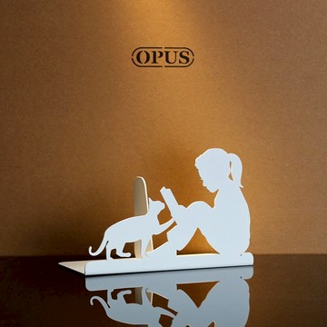 ★ 適用書櫃陳列展示 ★ 創意擺飾增添品味 ★ 辦公文具收納用品 ★ 送禮自用兩相宜趣味剪影造型書架,具設計感鋼琴烤漆質感創造收納與展示功能鐵藝搭配優雅白色系,具裝飾性可收納分類書本、雜誌、課本OPUS -- 台灣文創品牌結合美觀與實用,以時尚創意歐式鐵藝設計讓生活融入想像力與趣味感。● OPUS 歐式鐵藝書擋《閱讀女孩》聰明收納好點子,書擋也可以創造生活美學!***這款OPUS【閱讀女孩書擋】設計靈感取材於女孩與貓的故事,喜歡閱讀的女孩Lily,身上散發像貓一般的魅力,時而文靜時而可愛,優雅又有主見,Lily正認真的念書給貓咪聽,念書給貓聽已經成了她的興趣。Lily的閱讀聲讓小貓感到放鬆和舒適,一動一靜之間流露著閒逸樸實情調。***採用低調奢華白色系,金屬質感搭配簡約外型,散發獨特迷人風采。無論是居家或辦公,輕鬆方便收納書籍、檔案夾、雜誌、課本等,讓空間美觀整齊,為您營造絕佳的視覺效果與收納空間!在凌亂的桌面上,想要尋找一個位置去放置文件檔案,卻又遍尋不著,是不是打亂了您的思緒?使用 OPUS 歐式鐵藝書架(擋),將你奔放的精神,暫寄在繁忙的工作桌上。功能:裝飾桌面、收納書本 材質:鍍鋅鋼板、精緻烤漆 產地:台灣設計、製造 尺寸:140x100x70mm重量:140克※圖片為書擋情境圖,不包含拍攝書本或週邊擺設物,僅限於文案指定之銷售商品及精美包裝。● 表面採用金屬烤漆工藝,特點為鋼琴烤漆效果,表面偶有微小顆粒,皆屬正常現象。 ● 請放置小孩不易取得之處,避免造成刮傷。 ● 避免置放於潮濕的環境。 ● 商品上如有水分,請立即使用乾燥且柔軟的棉布擦拭乾淨,以避免生鏽、氧化的可能性。產地/製造方式東齊金工秉持品質至上的理念,用心打造台灣金工品牌,耗資數千萬添購日系AMADA雷射切割與折床等設備。 擁有27年以上金屬製品研發實務經驗,並以鋼琴烤漆上色,色澤亮麗均勻,觸感一流。