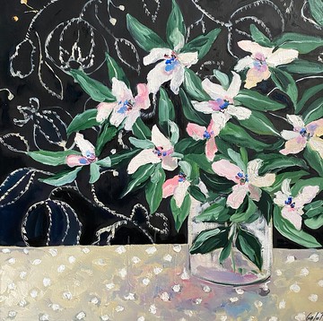 静物与苹果花 布面油画 抽象花朵 室内装饰 艺术礼物创意