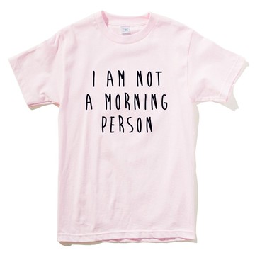I AM NOT A MORNING PERSON 男女短袖T恤 淺粉紅色 我不是一個早起的人 文青 藝術 設計 時髦 文字 時尚