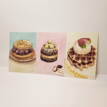 吃不胖甜點原創水彩插畫明信片卡片
