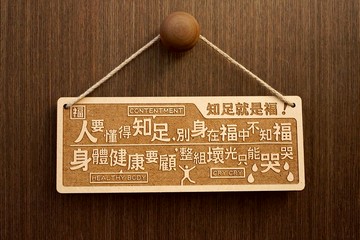 「知足就是福」上聯:**人要懂得知足,別身在福中不知福**下聯:**身體健康要顧,整組壞光只能哭哭**** Cherish What You Have!****Cherish what you have while you still have it.****Take care of yourself before it’s too late.**尺寸寬:30cm / 高:12cm商品特色● 使用環保回收集成材「密底板」製作。● 使用雷射雕刻,精細度高,質感佳。● 可掛在牆上、門上、辦公桌等地方時時激勵自己。● Made in Taiwan