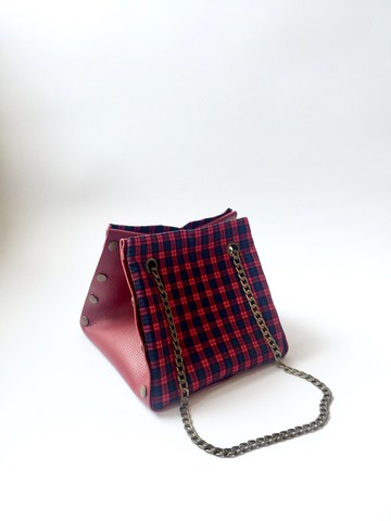 自由組合式 小方形皮革拼布手袋 紅色皮革 布料隨時替換