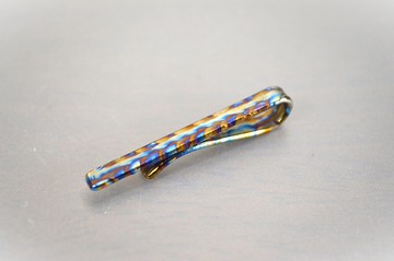 鈦金屬領帶夾・鍛造純鈦領帶夾・鎚紋・虹彩變色塗層