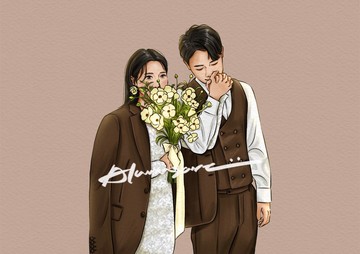 【客製化婚紗似顏繪】韓系婚紗電子檔下單前請先私訊設計師討論喔