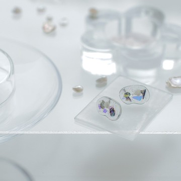 Boundary系列 玻璃耳環 耳夾 單隻 圓形 透明 紫色