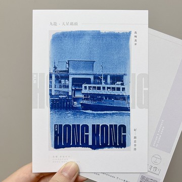 藍曬香港/九龍 直版 天星碼頭 藍曬複印 明信片 心意卡 香港製