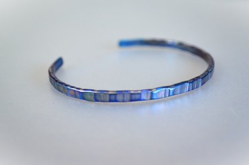 鈦金屬手鐲・藍色鎚紋・橢圓形款式・訂製生產