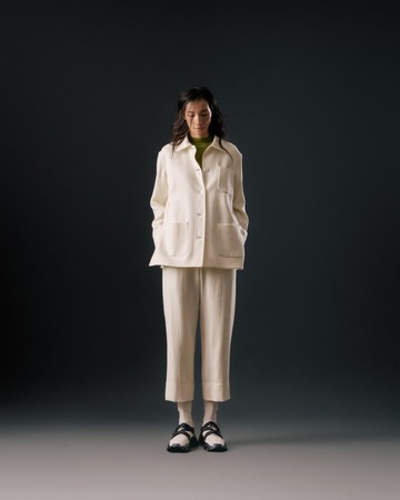| 商品尺寸 | M號 肩寬: 44cm / 胸圍: 104cm / 袖長: 58cm / 衣長: 70cmL號 肩寬: 46cm / 胸圍: 106cm / 袖長: 58cm / 衣長: 70cm**﹆衣服細節與穿搭建議**少見的純白羊毛休閒外套,以襯衫外套版型打造,結合俐落線條與柔和氛圍,特別適合小巧身形,穿上立現白皙膚色與優雅氣質。翻領與雙口袋設計為整體增添造型亮點,簡約中帶有細節巧思。內裡貼心設計不刺膚,提升穿著舒適度,羊毛材質輕盈保暖,是秋冬季節不可錯過的溫柔單品。無論單穿或層搭,都能展現恬靜可愛的風格魅力。https://live.staticflickr.com/65535/54790101242_3c932bcb92_c.jpghttps://live.staticflickr.com/65535/54791280505_c79075fc2d_c.jpghttps://live.staticflickr.com/65535/54791187429_7465171a90_c.jpghttps://live.staticflickr.com/65535/54790101232_f0c70551f7_c.jpghttps://live.staticflickr.com/65535/54791280495_a54f0d47de_c.jpg**﹆洗滌方式**參考洗標清洗方式❍ 可以乾洗❍ 中溫熨燙❍ 吊掛晾乾✗ 不可水洗✗ 不可烘乾✗ 不可漂白**產地/製造方式**台灣手工訂製**衣物面料材質**❐表布 羊毛100%❐配布 棉質55%、蠶絲45%**全館超商取貨免運📣**如果對商品購買,或是其它的問題希望討論,請留下您的聯絡資訊,我們會在1-2個工作天回覆您!**📦包裝分享📦**選用雙層結構的瓦楞紙箱,有效保護寄出的商品,確保內容物在運送過程中的安全與完整。延續品牌一貫的簡約留白美學,線條俐落、質感低調,傳遞出優雅極簡的視覺語言。希望讓您如收到一份專屬的禮物般——充滿期待,也值得被細細品味。https://live.staticflickr.com/65535/54791242600_e1ab0138d8_c.jpg**🔔設計館週六及週日休息,暫停出貨,請耐心等候我們週一開始出貨****🔔實際到貨日期以物流作業為主,無法指定到貨日期****❣️溫馨提醒❣️****電商通路之消費均不享有實體門市會員累計,及優惠與權益**