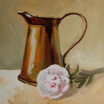 銅咖啡壺粉紅牡丹畫原創油畫靜物 20 x 20 厘米
