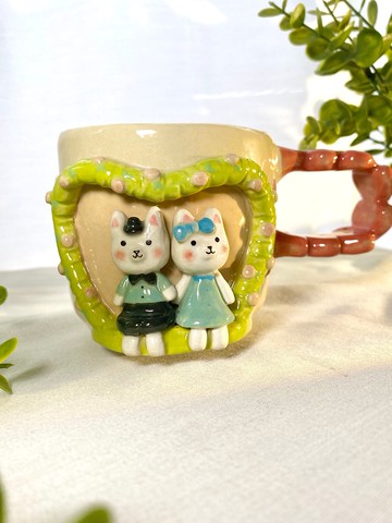 超可愛的手工陶瓷🥰每一步都是手工🙌和充滿愛的❤️從拿起黏土並手工塑造開始👇直到變成各種形狀的容器🌼然後用筆尖塗抹🎨🖌️👩🎨然後塗上透明琺瑯。然後在1200攝氏度的溫度下烘烤。直到它成為一個堅固耐用的容器☕️對使用者來說也是安全的可以放進微波爐可用洗碗機清洗