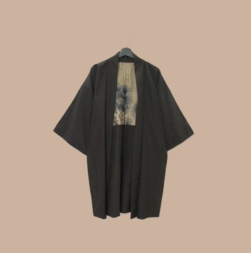 Back to Green-日本透膚羽織 低調黑 花草章tf-38/vintage kimono