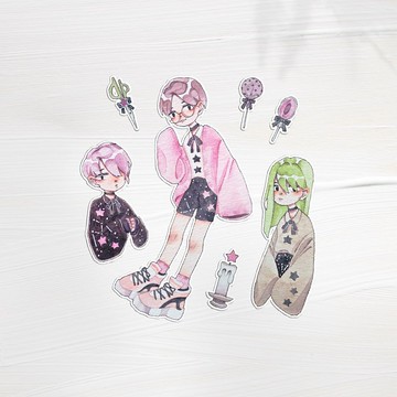 星之子手繪水彩貼紙7入