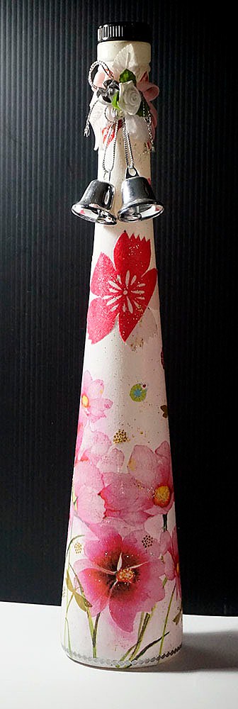 花花世界- 蝶谷巴特花瓶用蝶古巴特剪貼藝術製作花花世界- 居家佈置 花瓶使用特別三角酒瓶為 瓶身拼貼技術,加上布料和其他元素組合,重新打造利用,尋找舊物新的存在價值也可以創造不同屬於獨一無二的商品瓶身:34x7cm 注意事項:1. 電腦螢幕與實品顏色略有偏差,以實品顏色為主2. 完全手工製作 (個人工作室) 下單前請再三考慮,謝謝你購物須知1. 由於電腦手機螢幕顯色不同及每人對顏色的認知略有差異,商品會有些許色差, 無法接受的買家請勿下標。2. 貨物為新品, 售出後, 概不退換, 下單前請再三考慮, 謝謝您。3. 若您對商品有任何問題時,請與設計師詢問,賣家會盡快回覆