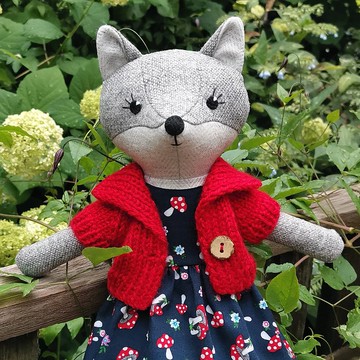 灰太狼女孩毛絨玩具,高度 - 32 厘米(13 英寸),由羊毛花呢製成,不致敏的合成填充物。紅色針織開衫和藏青色蘑菇連衣裙,或帶有小花和葉子的白色連衣裙。繡有眼睛和鼻子。所有衣服均可脫卸。購買前選擇一件或兩件衣服。如果您想要其他衣服 - 請聯繫我。僅使用新面料、合成填充物和紗線。在無菸家庭中製作。玩具不能用洗衣機清洗。玩具可以進行表面清潔,衣服可以用棉質和羊毛用洗滌劑在溫水中清洗。