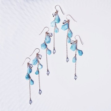 Jacinthe / 賈桑特【 La mer (海)】以層層堆疊、退去又湧回海岸的浪潮為靈感,這款長款耳環融入了拉利瑪石。略長的設計,更顯優雅,令人沉醉於天然石的迷人色彩。拉利瑪石的晶語是「愛與和平」。宛如將加勒比海的海面結晶於此,被譽為世界奇蹟的寶石。實際觸摸時,儘管它是不透明的礦石,凝視其中,彷彿能感受到那澄澈的藍色光暈在輕輕搖曳,是一種非常奇妙的感受。耳勾處點綴著閃耀的水晶骰子,長耳環的尾端,垂墜著一顆藍玉髓的淚滴。醫療級不鏽鋼耳勾其他金屬 14KGF (14K 包金)全長 約 68mm材質:水晶 (耳勾上的骰子)、拉利瑪石 (3 顆)、藍玉髓 (尾端的淚滴)※ 由於天然石的特性,可能帶有黑點、色差或天然裂痕。敬請理解。※※ 包裝材質可能因季節不同而有所變動,恕不另行通知。無論採用何種包裝,本工作室的員工都會細心地為您包裝。■ 關於拉利瑪石 / 柱狀黝簾石 (Pectolite)晶語:愛與和平在柱狀黝簾石中,特指藍色系的品種。於 1974 年被發現,因其美麗如海的色澤而備受矚目,讓過去未被視為寶石的柱狀黝簾石,開始受到關注。目前僅在多明尼加共和國的 Paoluco 礦山進行開採。拉利瑪石那神秘的藍色,據說源於其含有的雜質銅。拉利瑪石的名稱,源自發現者之一、多明尼加人 Miguel 的女兒 "Larissa",以及西班牙語中代表海洋的 "Mar" 的組合。它被列為世界三大療癒石之一。■ 關於水晶 (Crystal / Quartz)晶語:純粹、無瑕、完美四月誕生石可能是歷史最悠久的寶石礦物之一。石英 (Quartz) 是由二氧化矽 (SiO2) 結晶形成的礦物。它會形成整齊的六角柱狀晶體,其中無色透明的品種被稱為水晶 (Rock Crystal)。古時被稱為「玻璃」並備受珍視。■ 關於藍玉髓 (Aquamarine)晶語:永恆的年輕、純粹、穩定、天使的寶石、幸福三月誕生石藍色的綠柱石 (Beryl)。其名稱源自拉丁語,意為「海水」。在綠柱石中,透明且呈現天藍色調的寶石名稱。日文又稱藍玉或水寶玉。【 關於醫療級不鏽鋼 】這是一種主要用於醫療器械的特殊不鏽鋼。在 JIS 標準中標記為「316L」,在各種不鏽鋼中,以其不易引起金屬過敏的特性而聞名。它具有不易生鏽、耐腐蝕、耐熱、不易變色等特點,同時也因其高強度(不易刮傷、不易損壞)而廣受歡迎。