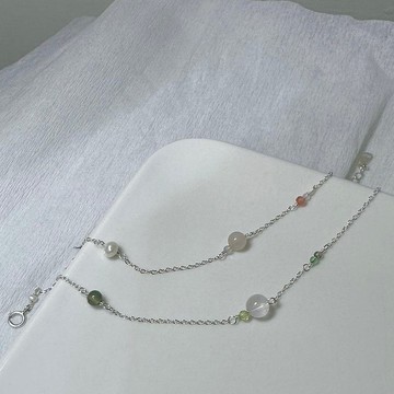 ✧ **材質**:綠:緬甸玉/天然彩寶/白水晶/瑪瑙/淡水珍珠/925銀 粉:淡水珍珠/拉長石/粉晶/南紅瑪瑙/925銀✧ **尺寸**:14公分(含扣頭)+延長鏈3公分這款手鍊真的自己太喜歡所以設計了兩個顏色!戴在手上每個角度都會看到不一樣的感覺。✧ **耳環**皆可改夾,下單備註即可。✧ **手鍊**統一為14公分(含扣頭)+延長鏈3公分,改短可直接下單時備註,改長須先聯絡設計師,酌收費用。✧ **項鍊(短鏈)**為38公分(含扣頭)+延長鏈5公分,改短可直接下單時備註,改長須先聯絡設計師,酌收費用。——————————————————☾ **純銀飾品介紹**顏色穩定,不會褪色,但會隨著接觸空氣氧化。遇到硫、酸等物質也會加速氧化,故泡溫泉、海水等較強烈侵蝕性水質則需重視事後清潔☾ **純銀保養及護理**1. 純銀最佳護理方法是「*天天配戴*」, 氧化不易形成。2. 使用拭銀布(棒)擦拭。如果飾品長時間不佩戴也需擦拭後再放入密封袋保存。3. 鏈條部分使用牙膏塗抹表面並用牙刷輕刷。4. 銀本身硬度較軟,須避免與其他飾品磕碰導致損壞。——————————————————☾ **關於尋。**品牌故事起源-想大家藉由尋找,找尋到一件心目中的飾品-設計師Aria,一名大學生,因為腦中時不時出現各種設計,試著打造出各種獨特的飾品,想著「就做做看吧!」的心態開始了飾品之路,並建立起了自己的品牌。在Aria心中,飾品不僅僅是一種放在人類身上的裝飾,更是一種藝術品,一種可以表達自己創造力和獨特風格的媒介。品牌的每一件產品,都是由Aria精心設計並親手打造而成。以純手工打造的方式,為每一件產品賦予了獨特的生命力和價值,並以此來表達對藝術的熱愛和追求。飾品皆使用925銀搭配半寶石製作,每款飾品都是經過設計搭配,包括半寶石選擇、顏色挑選、銀飾選擇層層都是一點一滴的心血,選擇以「925銀」搭配半寶石是因為想做真的能帶好幾年甚至更久的飾品!☾ **設計師Aria的話**- 休息日都會在instagram公告,可以搜尋🔍search2023_ 。- 每顆天然寶石都是天然形成,顏色不會一模一樣,了解特性後,歡迎帶它們回家♡- 每件飾品都是**手工製作**,美好的事物都需要等待,如果是**急單**,請先私訊設計師,溝通後再下單。——————————————————☾ **售後及退/換貨**- 商品售出後無法以**和預期不符**退貨,每件飾品都是花時間心力製作的,因此看好頁面說明再下單♡- 商品有任何問題可以私訊設計師,會看到訊息的第一時間處理。- 商品有問題或是需要維修也可以聯絡設計師,也可以追蹤我們instagram擺攤資訊,現場也可以進行維修。