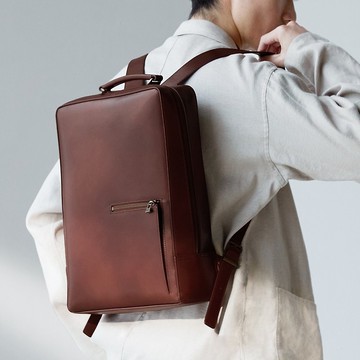 **兼具質感與功能性的簡約方形後背包。以收斂修飾的外型全新登場**本次方形後背包是運用於天然牛皮緩慢浸潤油份的復古皮革剪裁而成。https://cdn.shopify.com/s/files/1/0272/7123/3634/files/MG13032_NOAB_model_02_db94ebd4-bc74-4958-b9fb-b7b809af93d3.jpg?v=1686640837藉由上半部傾斜延伸的包身設計,讓外型更為收斂修飾,後背時展現時髦有型的模樣。另外更調整了包包前側口袋的大小與肩背帶長度,讓更多使用者都能輕鬆背負。**為充分展現皮革特色,減少冗贅裝飾的簡約設計**為了讓使用者充分享受復古皮革的深沉韻味,設計上減少冗贅裝飾,講求簡約風格。包身正面只有一個拉鍊夾層作為設計亮點。而無縫線的設計帶來簡潔的外型,在背負時凸顯包型的優美。https://cdn.shopify.com/s/files/1/0272/7123/3634/files/MG13032_NOAD_model_02MG13032_NOAD_model_02_b68504f9-c46c-447d-ae47-3ba5663167e8.jpg?v=1686634732**可輕鬆攜帶A4尺寸的物品,容量充足也適合上班使用**https://cdn.shopify.com/s/files/1/0272/7123/3634/files/MG13032_NOAB_description_11_b40cc211-15b6-4de3-b815-6a2a7ac91a59.jpg?v=1686636246外表看似簡約俐落,卻擁有充足的厚度,可以整齊裝進A4文件、筆記型電腦或大型隨身物品。擁有充足的包身厚度,也能活用於上班的場合。https://cdn.shopify.com/s/files/1/0272/7123/3634/files/MG13032_NOAB_description_02_43625576-d398-4f04-9e7e-3159b6a448bf.jpg?v=1686636246如果是13吋左右的筆記型電腦,可以妥善收納進後側的大型夾層內,還可裝入A4文件等其餘物品。筆記型 電腦最大可裝入15吋左右的尺寸。https://cdn.shopify.com/s/files/1/0272/7123/3634/files/MG13032_NOAB_description_12_d70bd69a-6e11-4b6a-a563-8c5896242b29.jpg?v=1686636246附有水壺夾層的全新設計。在寬廣的包內空間也能輕鬆歸納物品https://cdn.shopify.com/s/files/1/0272/7123/3634/files/MG13032_NOAB_description_01_f4468e3a-ee5b-46dc-a5b2-d9304a2207ff.jpg?v=1686636246正面夾層經過改良後,夾層的深度17.5cm與寬度11cm,可收納手機、車票或名片夾等物品,方便拿取。(可裝入iPhone 14 Plus)**電腦夾層尺寸**https://cdn.shopify.com/s/files/1/0272/7123/3634/files/pocketsize-backpack-img_2.jpg?v=1686642890①寬:24cm ②高:25cm ③深:2cm可收納15吋左右的筆記型電腦。若是13吋的尺寸則可剛好裝進電腦夾層
